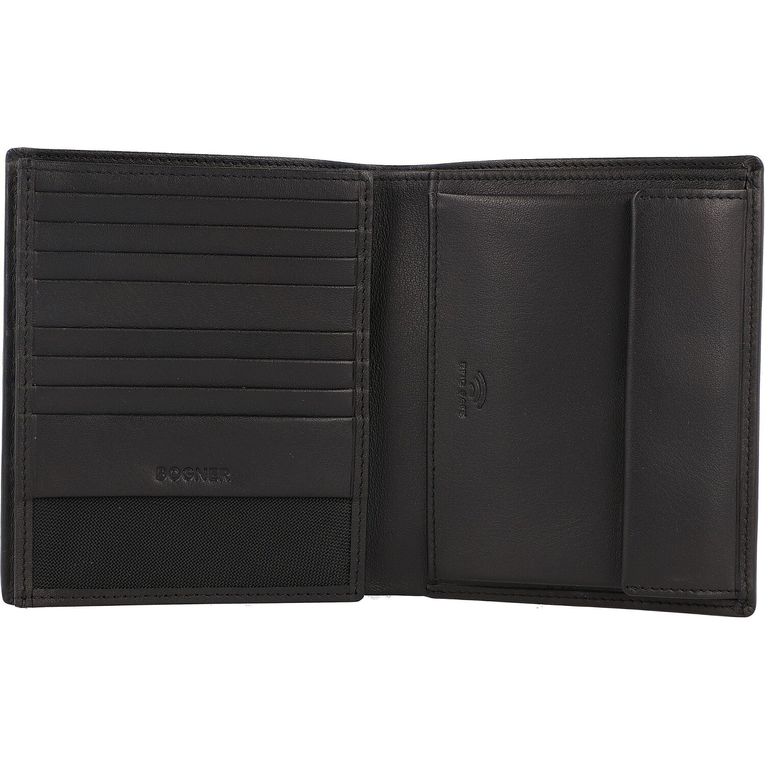 Porte-monnaie en cuir véritable lisse au design classique et élégant de Bogner. En plus des compartiments pour cartes de crédit/fiches, il y a aussi un compartiment pratique avec filet et une poche pour la monnaie.