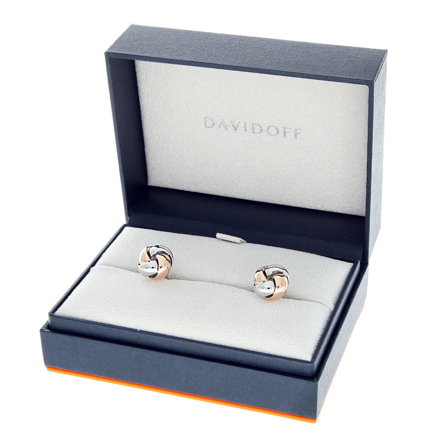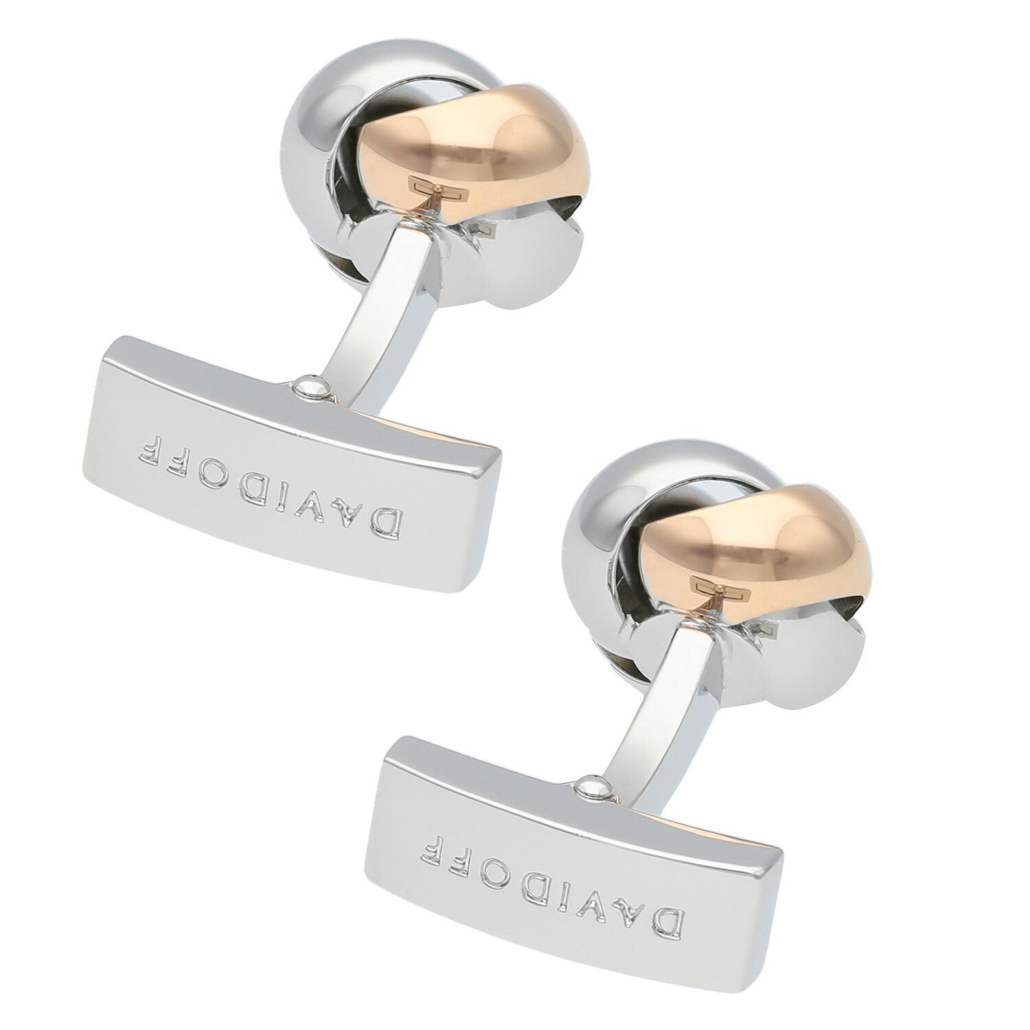 Jolis boutons de manchette de Davidoff de la série Essentials en forme de nœud. Les boutons de manchette sont en laiton robuste. Le logo Davidoff se trouve sur la fermeture en queue de baleine.