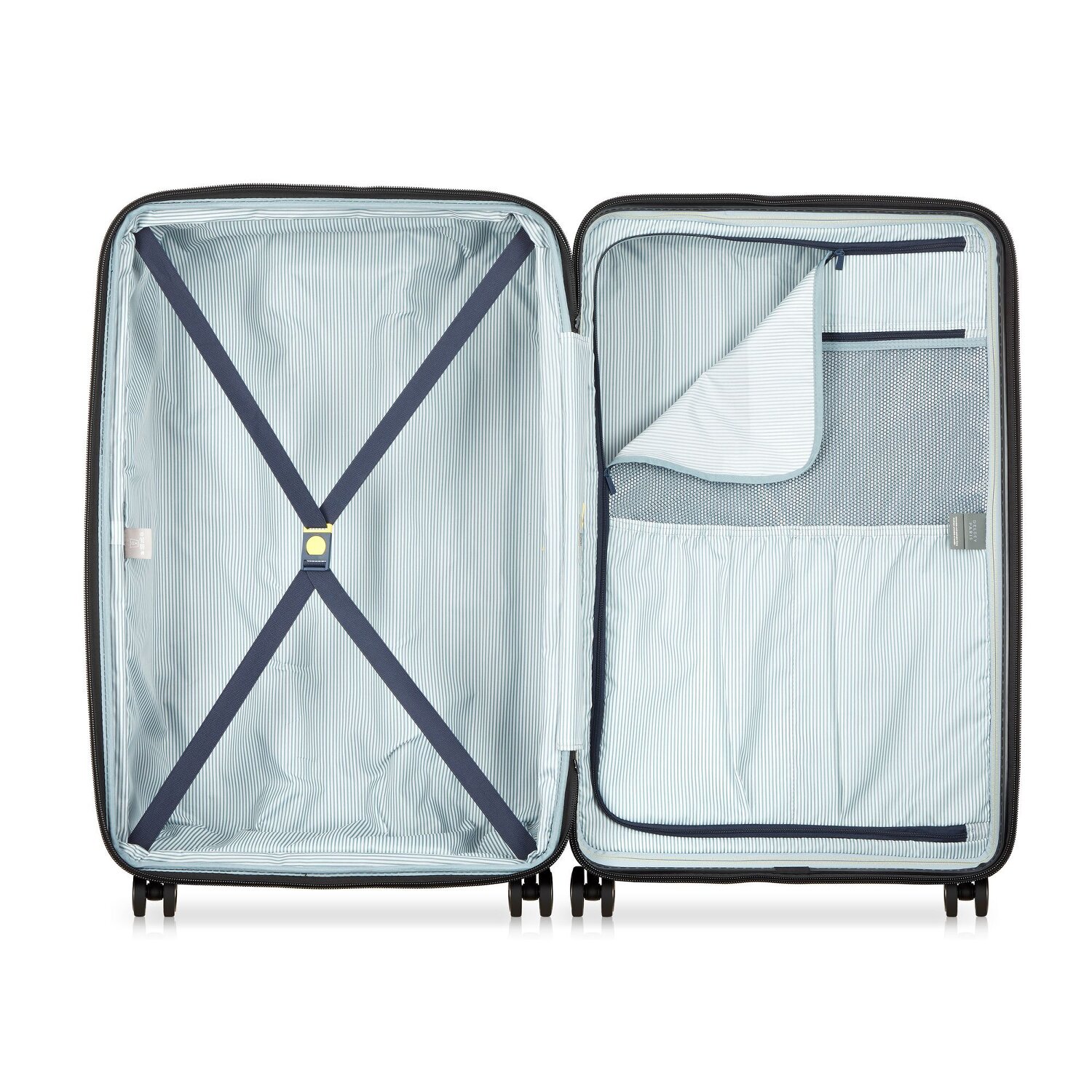 En route au rythme palpitant des métropoles ? Avec la valise rigide de la série Delsey Paris Longitude, on est préparé avec style. L'espace de rangement intuitif grâce à la sangle croisée, le compartiment à linge et le filet promettent une organisation sans effort. Un atout supplémentaire est son soufflet extensible qui permet de faire un peu de contrebande de souvenirs sur le chemin du retour. La poignée verrouillable et le cadenas TSA garantissent la sécurité et la commodité. Résistant et facile à porter, le polycarbonate réunit ces qualités polaires opposées. Et la poignée de transport toujours accessible ? Eh bien, dans les escaliers d'aéroport, c'est un luxe qui n'a pas de prix. Alors, on roule sa valise au soleil levant en se perdant dans ses pensées, quelqu'un ? Grâce au soufflet d'extension, la valise peut être agrandie jusqu'à une largeur de 36 cm.
