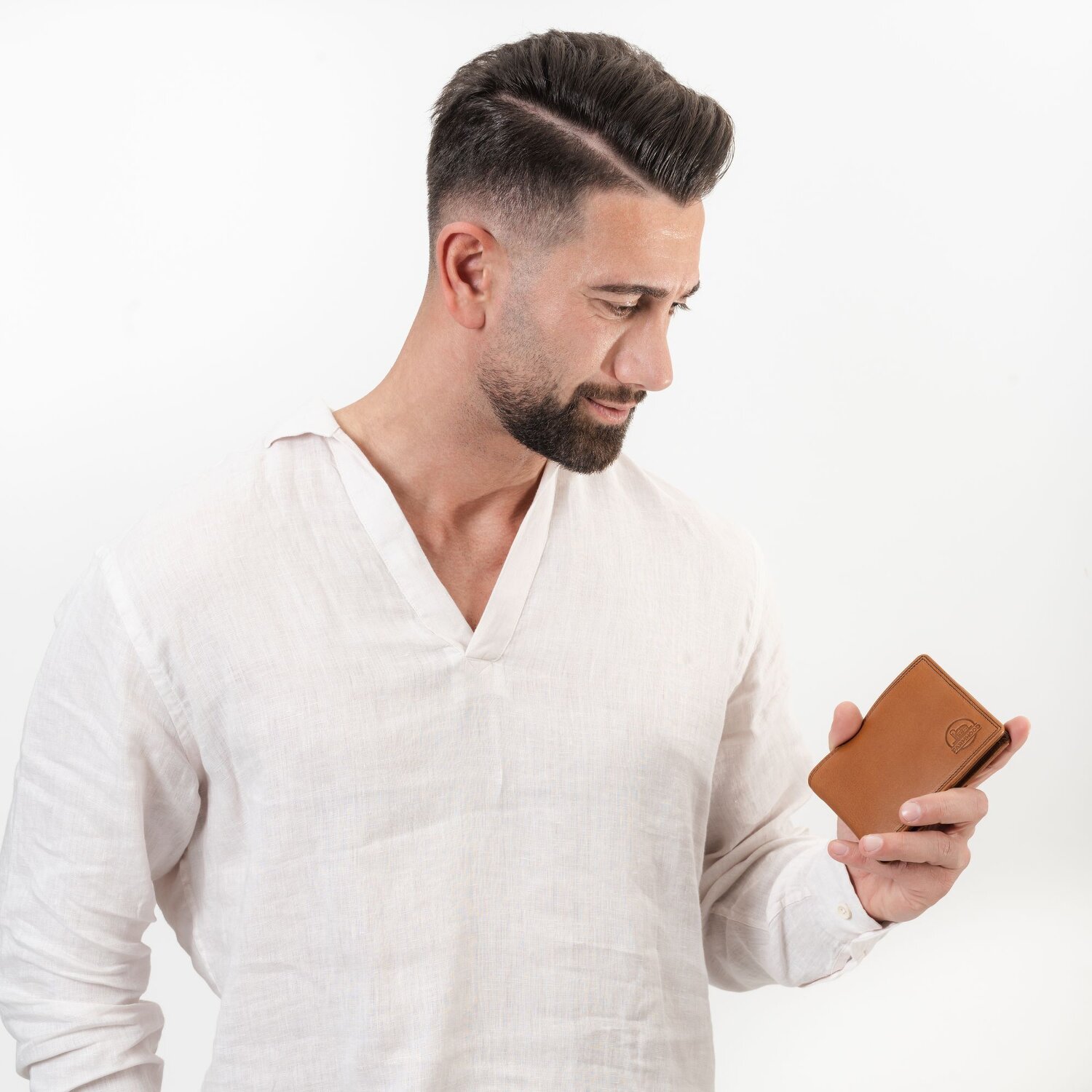 Porte-monnaie élégant pour hommes de Farmhood, en cuir, au design classique et intemporel. Le porte-monnaie offre un intérieur pratique avec de nombreux compartiments pour les billets, la monnaie et les cartes. Le porte-monnaie est également doté d'une protection RFID contre l'utilisation abusive des données.
